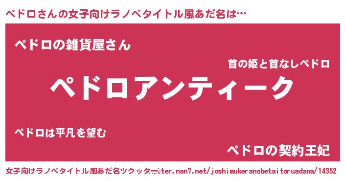 | 男性向けラノベタイトル風あだ名 | 『魔法科高校のペドロ』 |