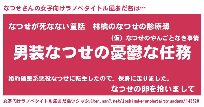 | 意味不明あだ名 | 『住所不定無職なつせ(5歳)』 |