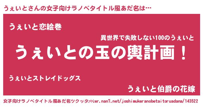 | 可愛いあだ名 | 『うぇぷりん』『うぇちゅっちゅ』 |