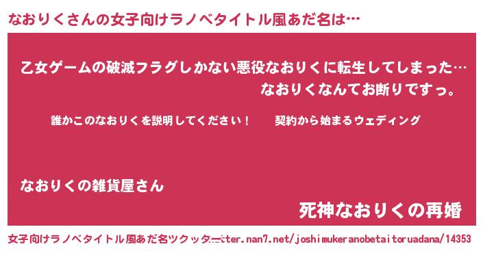 | 男性向けラノベタイトル風あだ名 | 『ナオリクアートオンライン』 |