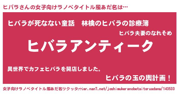 | ヒーロー風カッコイイあだ名 | 『ウルトラ戦士ヒバラ』『仮面ヒバダー』 |