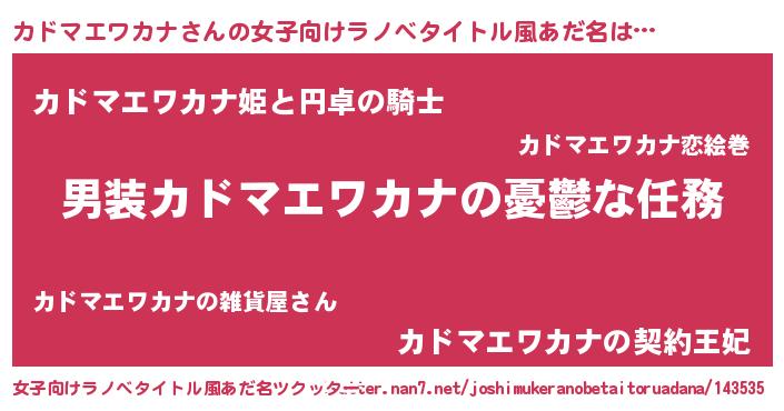 | 男性向けラノベタイトル風あだ名 | 『冴えないカドマエワカナの育てかた』 |
