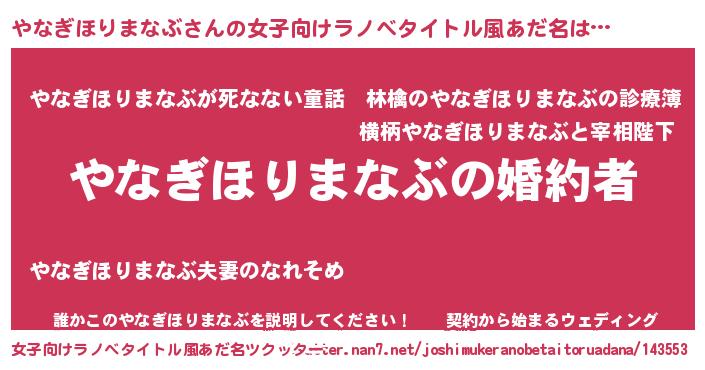 | ファンタジー風あだ名 | 『エターナルヤナギホリマナブー』 |