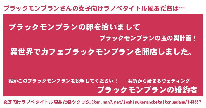 | 胡散臭い通販商品みたいなあだ名 | 『前代未聞の水素水…その名も「ブラックモンブラン」』 |
