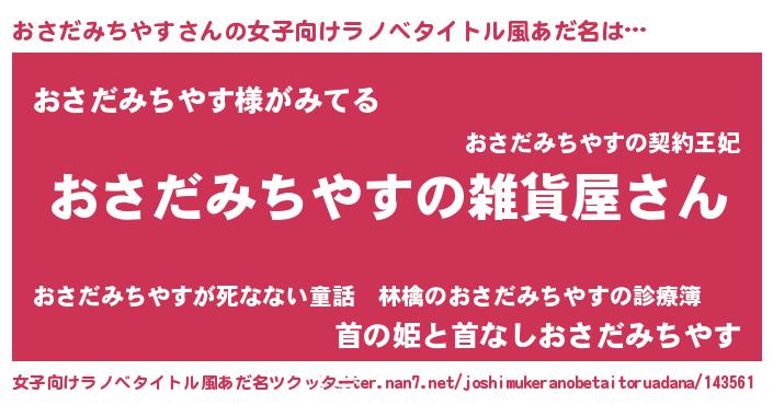 | 男性向けラノベタイトル風あだ名 | 『やはりおさだみちやすの青春ラブコメはまちがっている 』 |