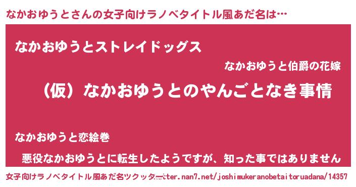 | 胡散臭い通販商品みたいなあだ名 | 『必ず成功する水晶球…その名も「なかおゆうと」』 |
