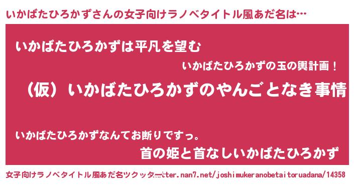 | 男性向けラノベタイトル風あだ名 | 『いかばたひろかずの憂鬱』 |