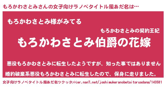| ファンタジー風あだ名 | 『エターナルモロカワサトミー』 |