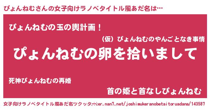 | 恥ずかしいあだ名 | 『ピョリンリン』『プリティーぴょんねむ』 |