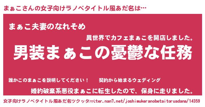 | 胡散臭い通販商品みたいなあだ名 | 『モンドセレクションを受賞した隕石のかけら…その名も「まぁこ」』 |