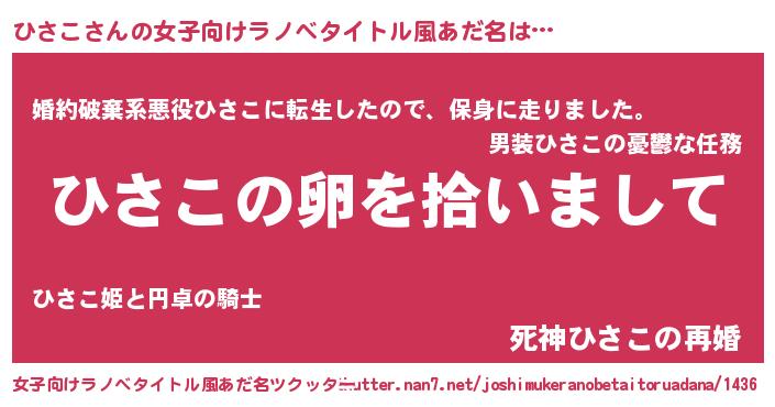 | ヒーロー風カッコイイあだ名 | 『幻影騎士ヒサ』『正義の使者ひさこ』 |