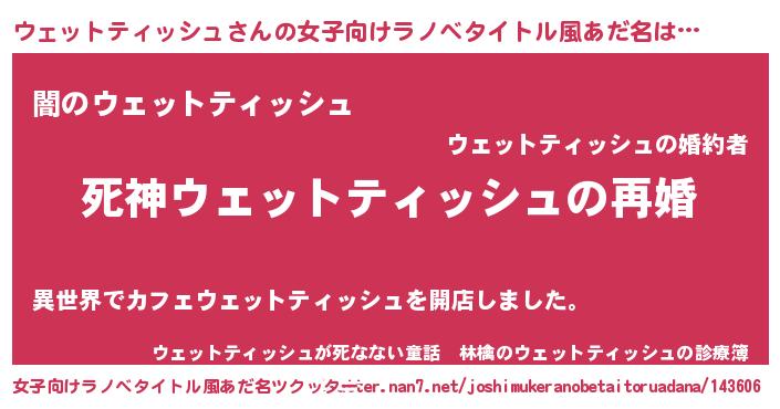 | 胡散臭い通販商品みたいなあだ名 | 『モンドセレクションを受賞したマグネット磁石…その名も「ウェットティッシュ」』 |