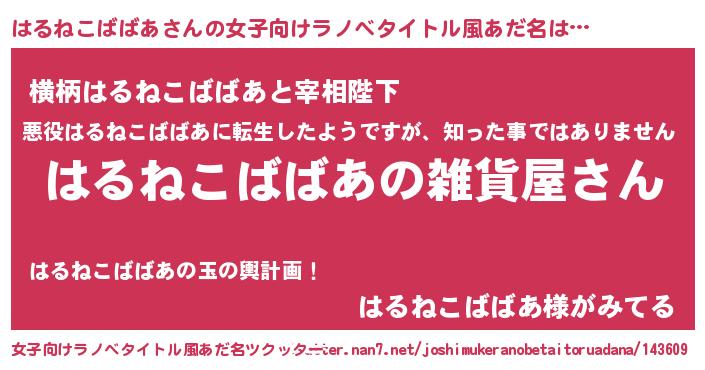 | 男性向けラノベタイトル風あだ名 | 『やはりはるねこばばあの青春ラブコメはまちがっている 』 |