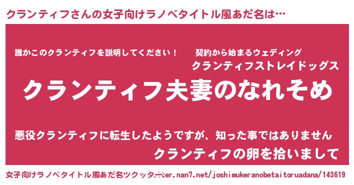 | ファンタジー風あだ名 | 『クインクット』『クラフェル』 |