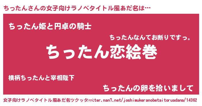 | 男性向けラノベタイトル風あだ名 | 『ノーゲーム・ノーチッタン』 |