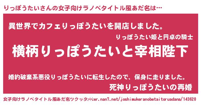 | 男性向けラノベタイトル風あだ名 | 『りっぽうたいに滅ぼされるだけの簡単なお仕事です』 |