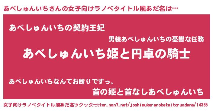 | 男性向けラノベタイトル風あだ名 | 『アベシュンイチアートオンライン』 |
