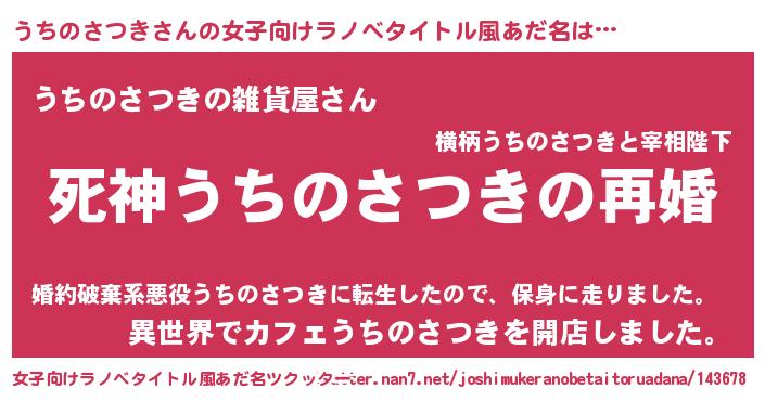 | 男性向けラノベタイトル風あだ名 | 『ノーゲーム・ノーウチノサツキ』 |