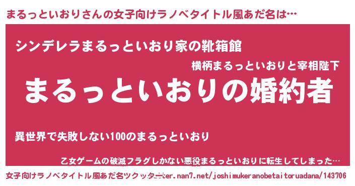 | 胡散臭い通販商品みたいなあだ名 | 『運命の人と巡り会える高級そうな壺…その名も「まるっといおり」』 |