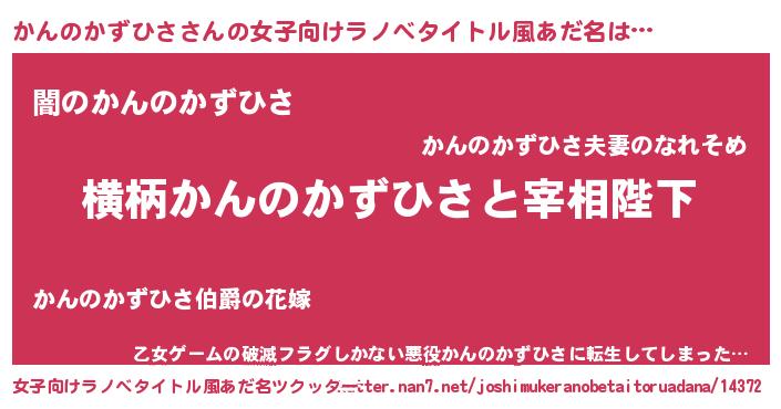 | 男性向けラノベタイトル風あだ名 | 『かんのかずひさに滅ぼされるだけの簡単なお仕事です』 |