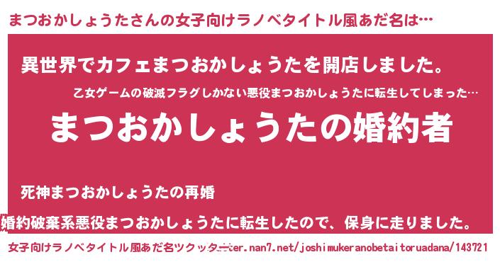 | 胡散臭い通販商品みたいなあだ名 | 『運命の人と巡り会える高級そうな絵画…その名も「まつおかしょうた」』 |