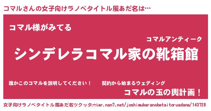 | 胡散臭い通販商品みたいなあだ名 | 『信頼と実績のサプリメント…その名も「コマル」』 |