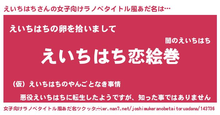 | 男性向けラノベタイトル風あだ名 | 『ノーゲーム・ノーエイチハチ』 |