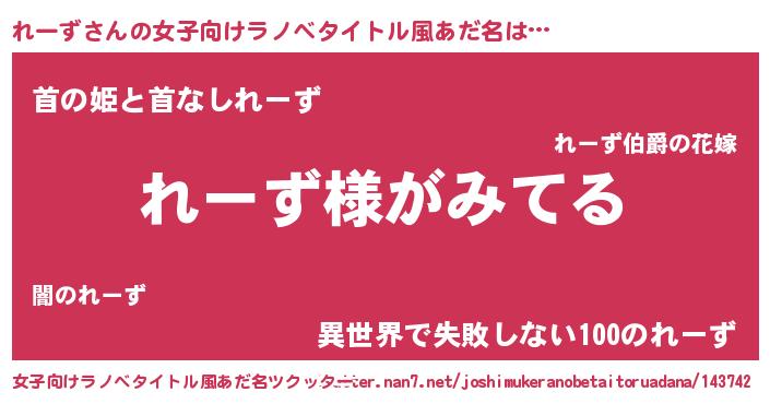 | 男性向けラノベタイトル風あだ名 | 『れーずの嫁は女の子じゃないと思った?』 |