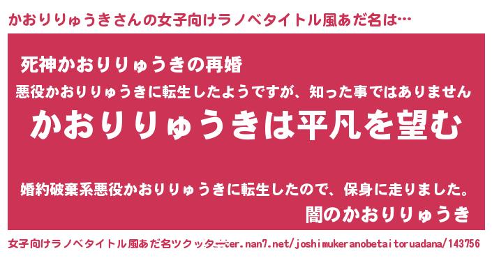 | 胡散臭い通販商品みたいなあだ名 | 『信頼と実績のネックレス…その名も「かおりりゅうき」』 |