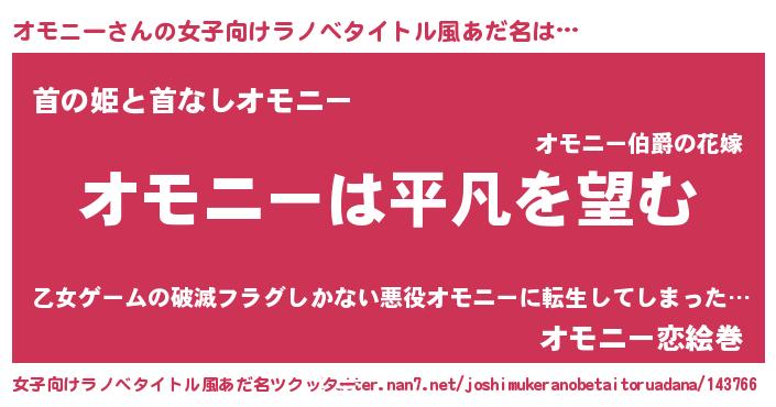 | ヒーロー風カッコイイあだ名 | 『魔戒騎士オモ』『正義の使者オモニー』 |