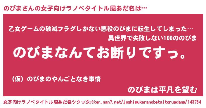 | 男性向けラノベタイトル風あだ名 | 『魔法科高校ののびま』『のびまの憂鬱』 |