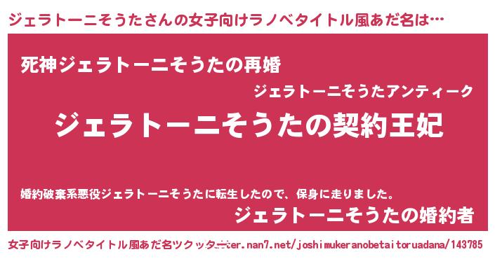 | 男性向けラノベタイトル風あだ名 | 『誰もが恐れるあのジェラトーニそうたが、ぼくの専属メイドになるようです。』 |