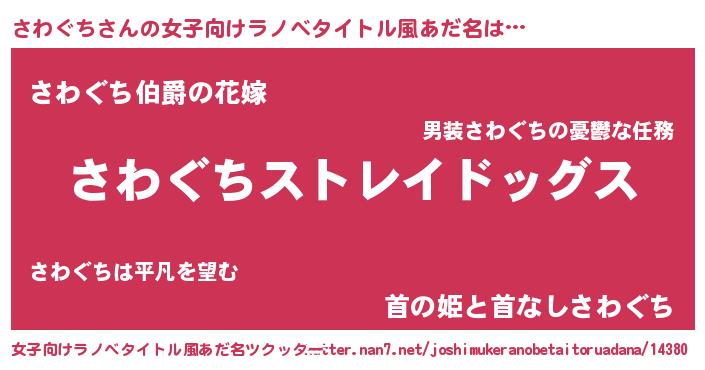 | ファンタジー風あだ名 | 『ゼサワトゥ』『エターナルサワグチー』 |