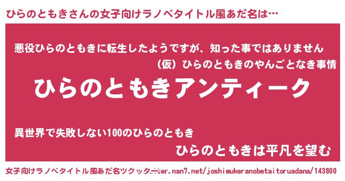 | 意味不明あだ名 | 『自称ひらのともき』 |