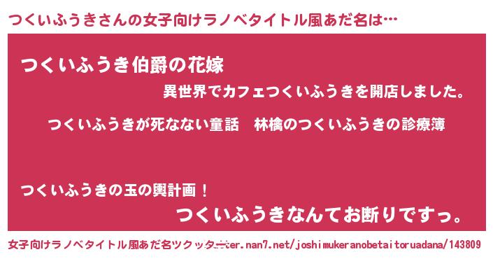 | 意味不明あだ名 | 『住所不定無職つくいふうき(50歳)』 |