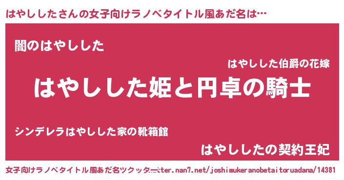 | 男性向けラノベタイトル風あだ名 | 『はやししたの憂鬱』『緋弾のハヤシシタ』 |