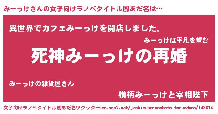 | 男性向けラノベタイトル風あだ名 | 『ノーゲーム・ノーミーッケ』 |