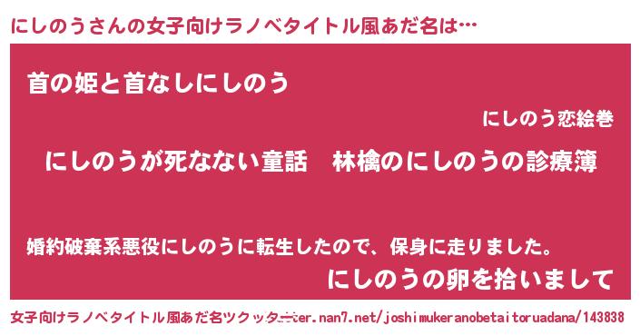 | 男性向けラノベタイトル風あだ名 | 『魔弾の王とにしのう』 |