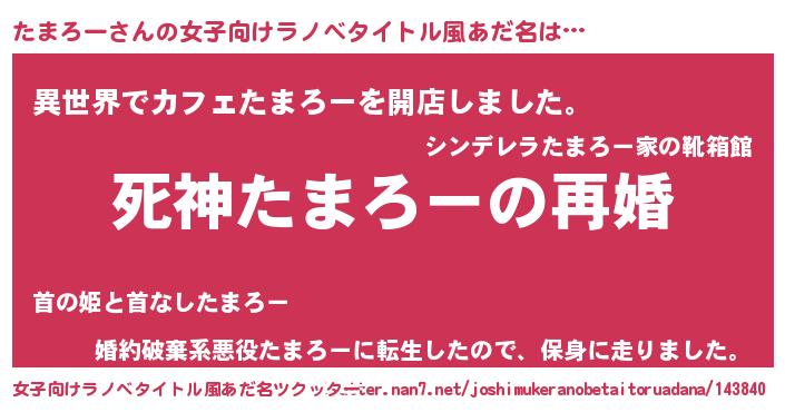 | 男性向けラノベタイトル風あだ名 | 『ノーゲーム・ノータマロー』 |