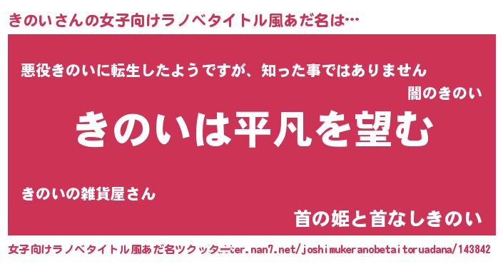 | 男性向けラノベタイトル風あだ名 | 『ダンジョンにきのいを求めるのは間違っているだろうか』 |