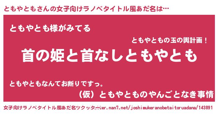 | 胡散臭い通販商品みたいなあだ名 | 『信頼と実績のペンダント…その名も「ともやとも」』 |