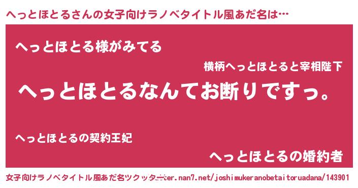 | 意味不明あだ名 | 『自称へっとほとる』 |