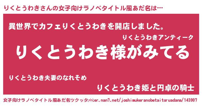 | 男性向けラノベタイトル風あだ名 | 『りくとうわきの嫁は女の子じゃないと思った?』 |