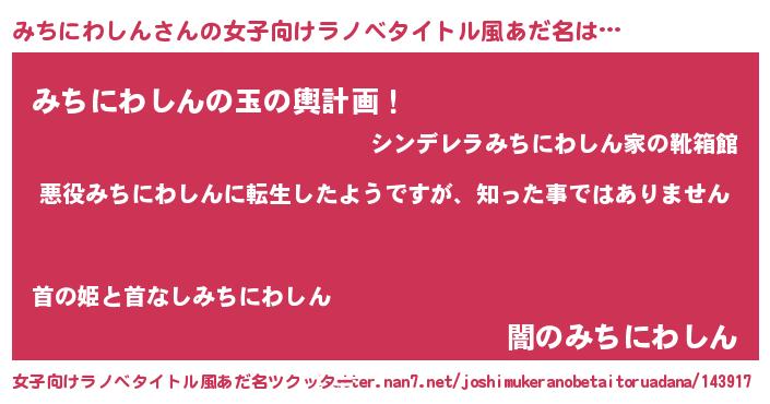| 男性向けラノベタイトル風あだ名 | 『この素晴らしい世界にみちにわしんを!』 |