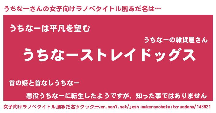 | 意味不明あだ名 | 『自称うちなー』『うちなーフォーエバー』 |