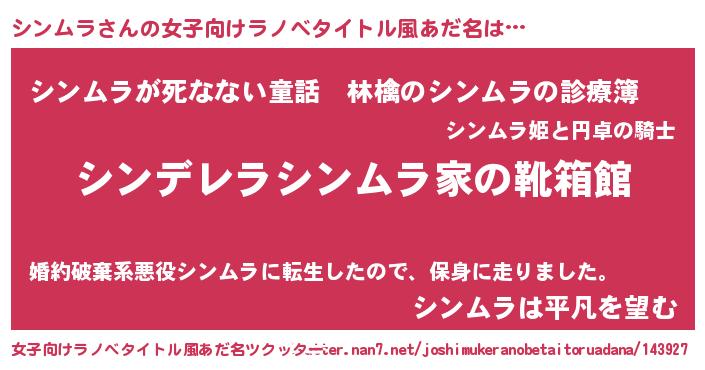 | 男性向けラノベタイトル風あだ名 | 『冴えないシンムラの育てかた』 |