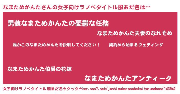 | 男性向けラノベタイトル風あだ名 | 『ナマタメカンタアートオンライン』 |