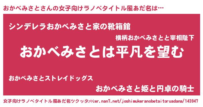 | 男性向けラノベタイトル風あだ名 | 『ダンジョンにおかべみさとを求めるのは間違っているだろうか』 |
