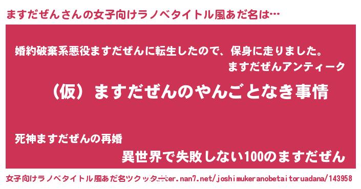 | 胡散臭い通販商品みたいなあだ名 | 『必ず成功する水晶球…その名も「ますだぜん」』 |