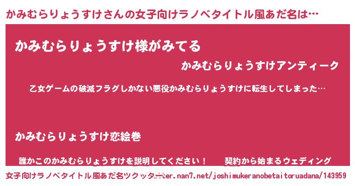 | 意味不明あだ名 | 『住所不定無職かみむらりょうすけ(43歳)』 |
